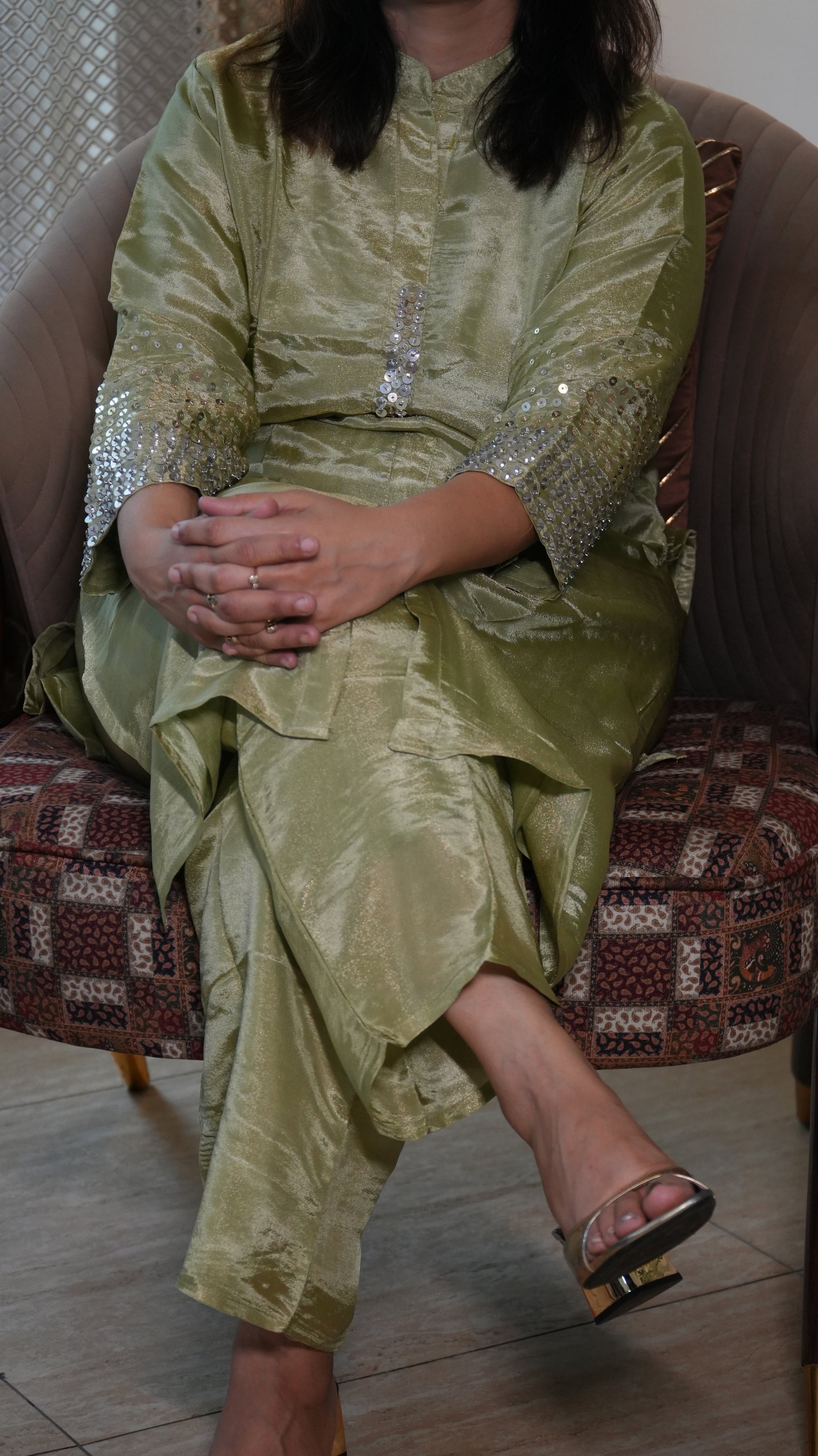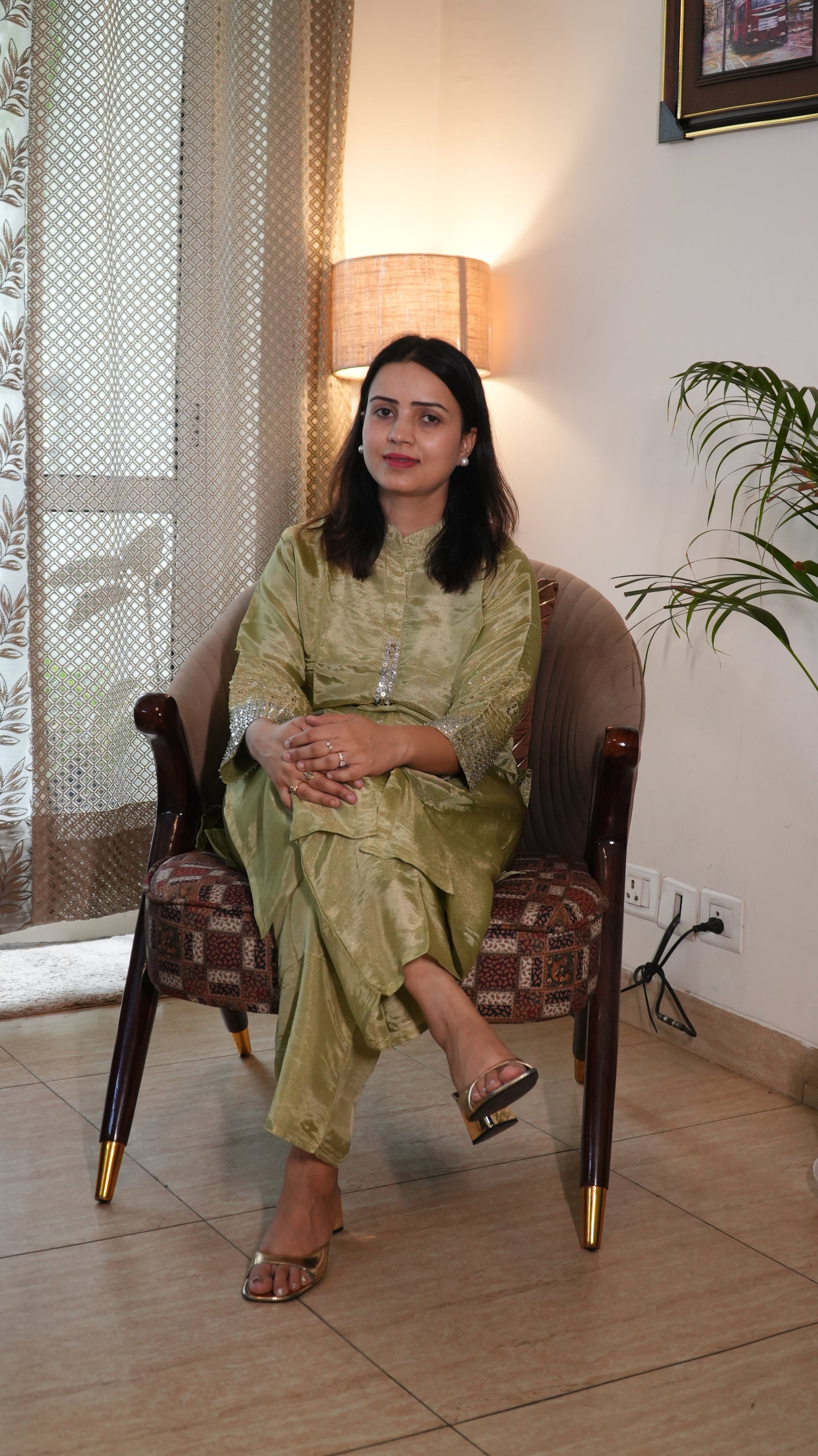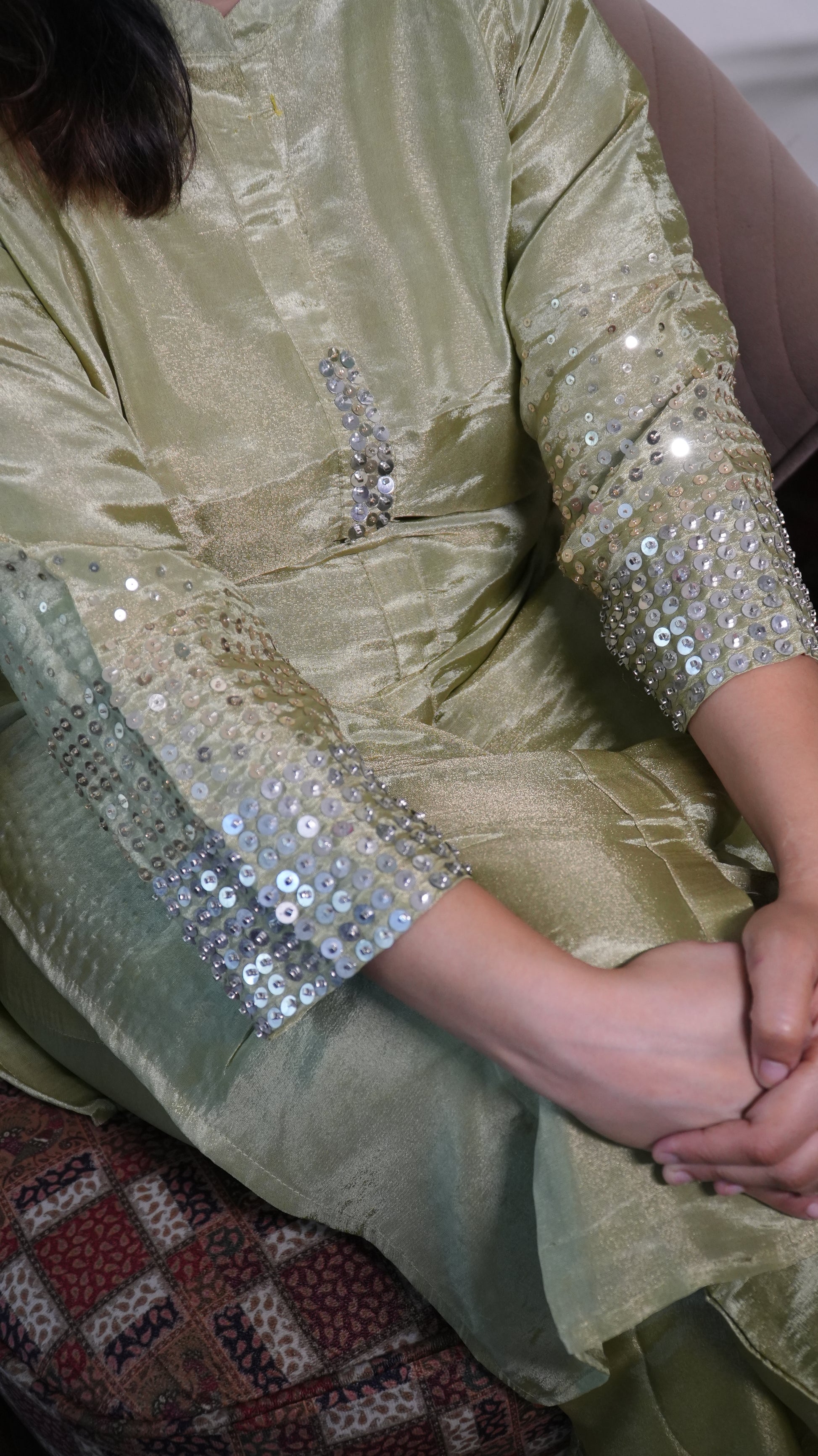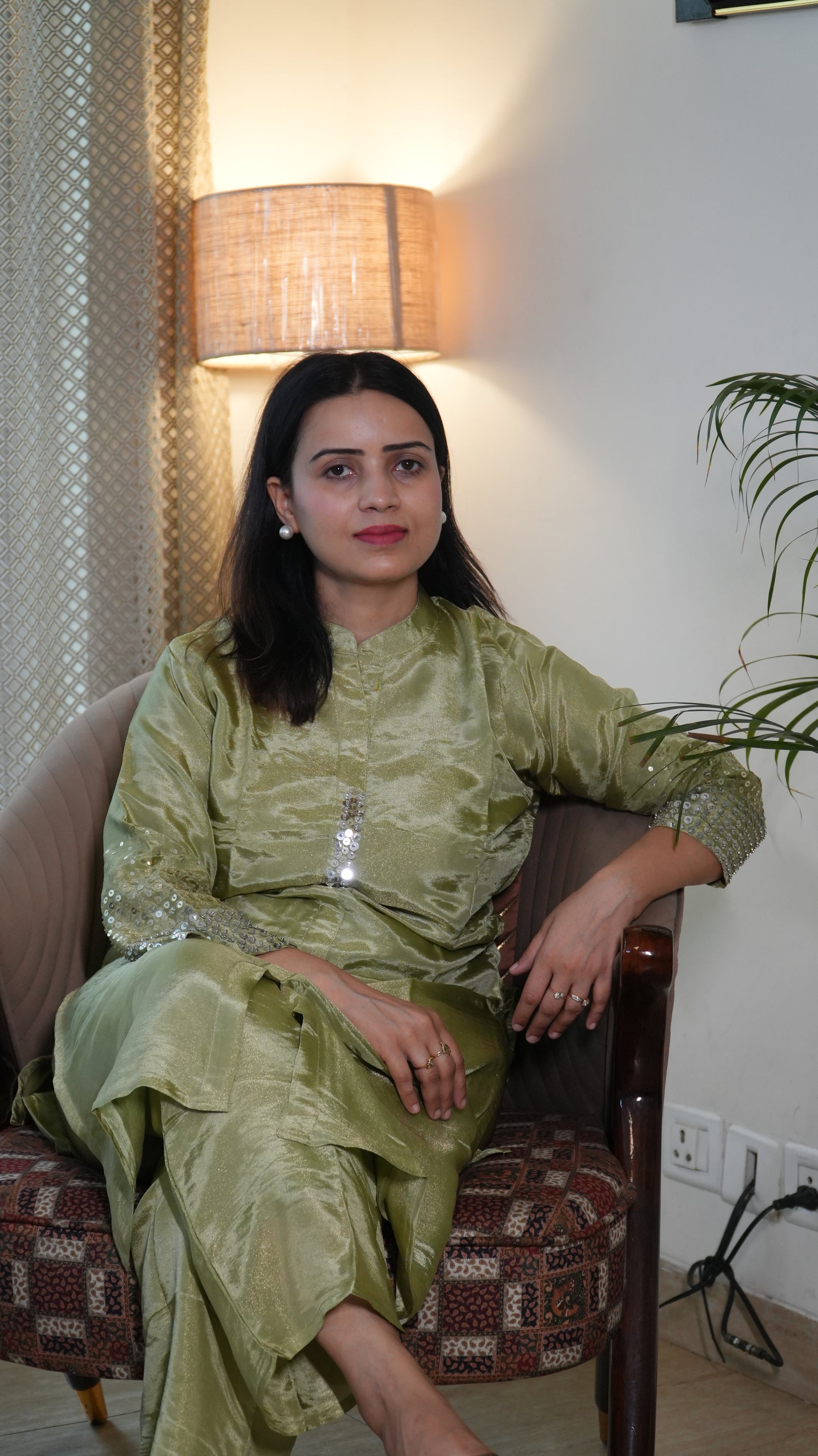 Beautiful work on the neck and the sleeves. Comes with Palazzo.