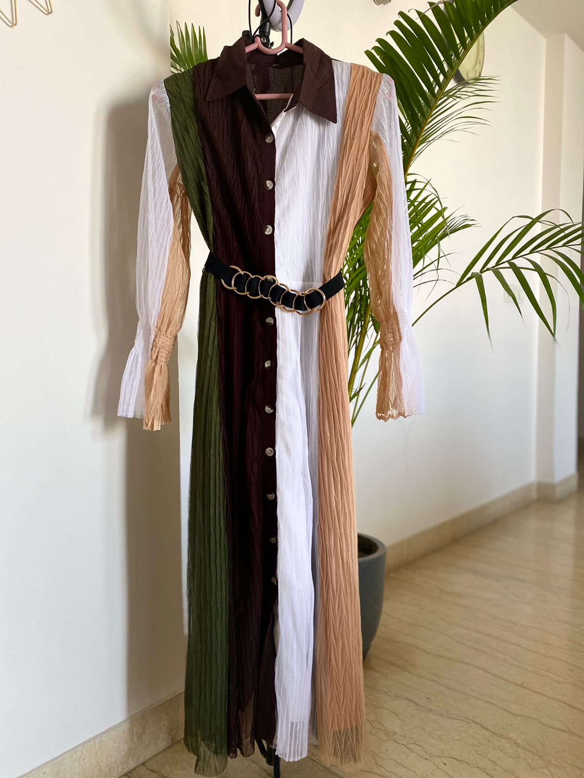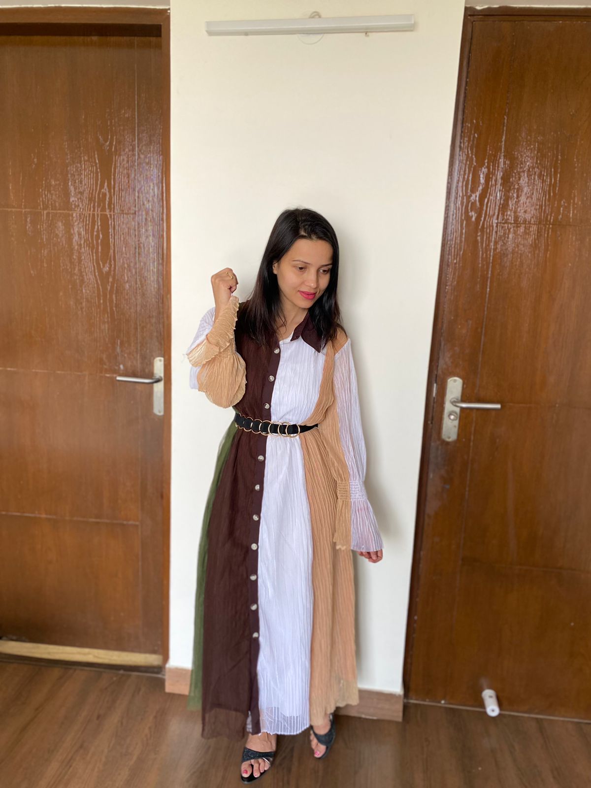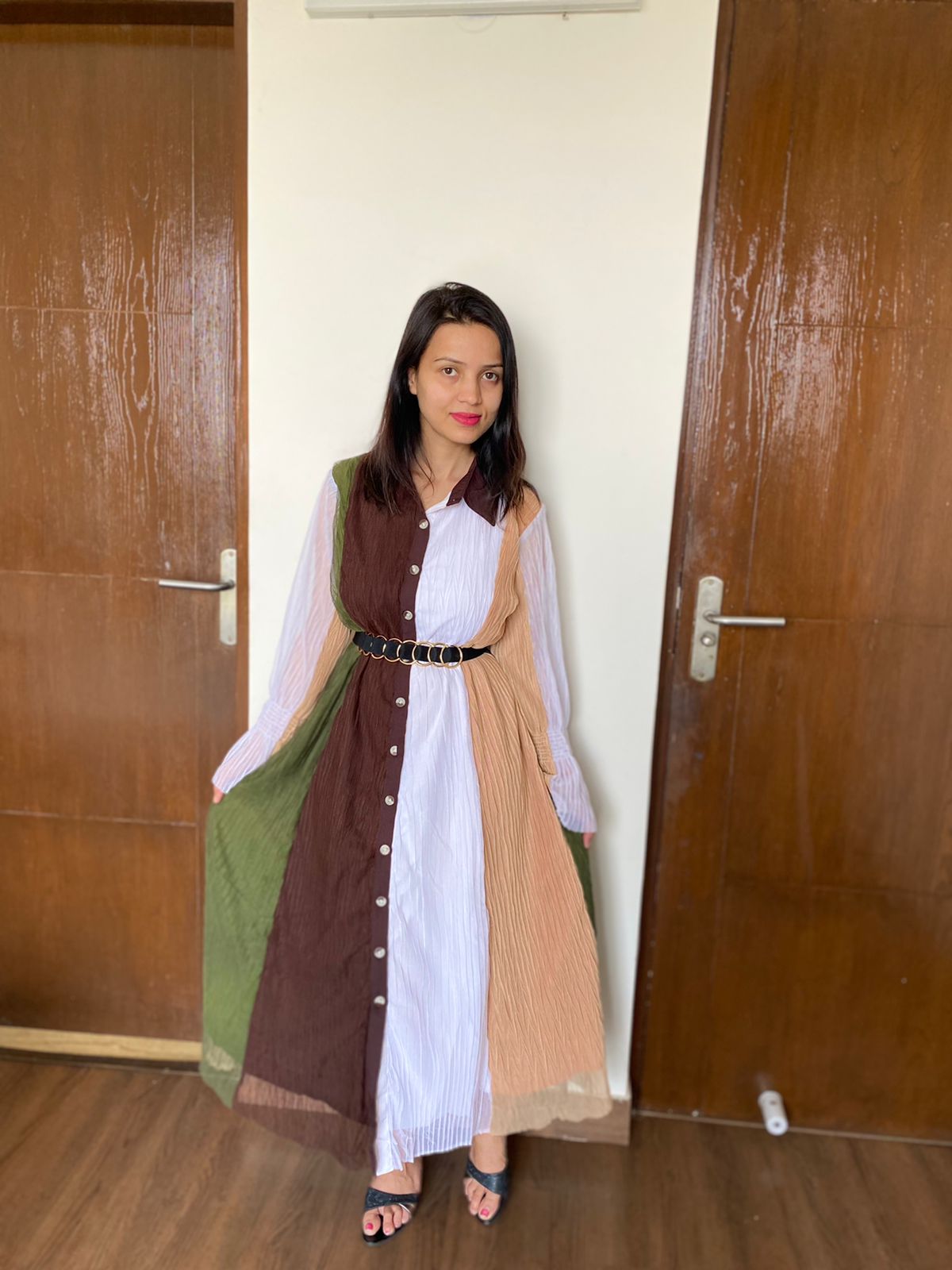 Front buttoned Non-transparent multi-color Dress