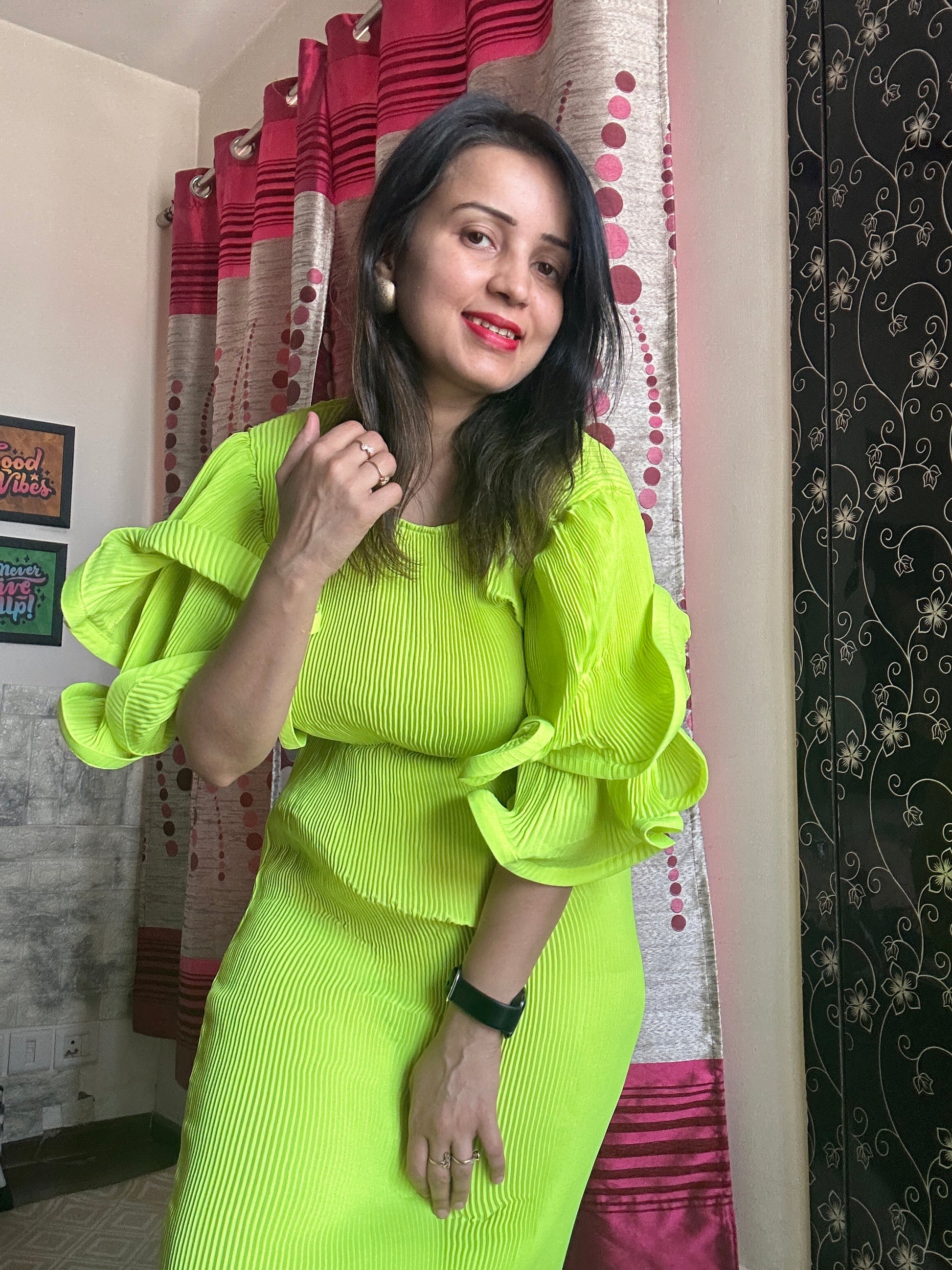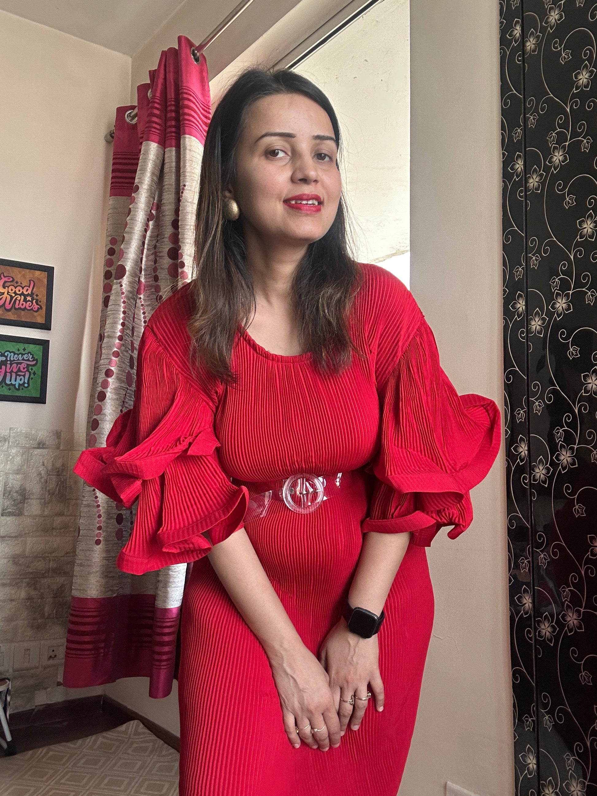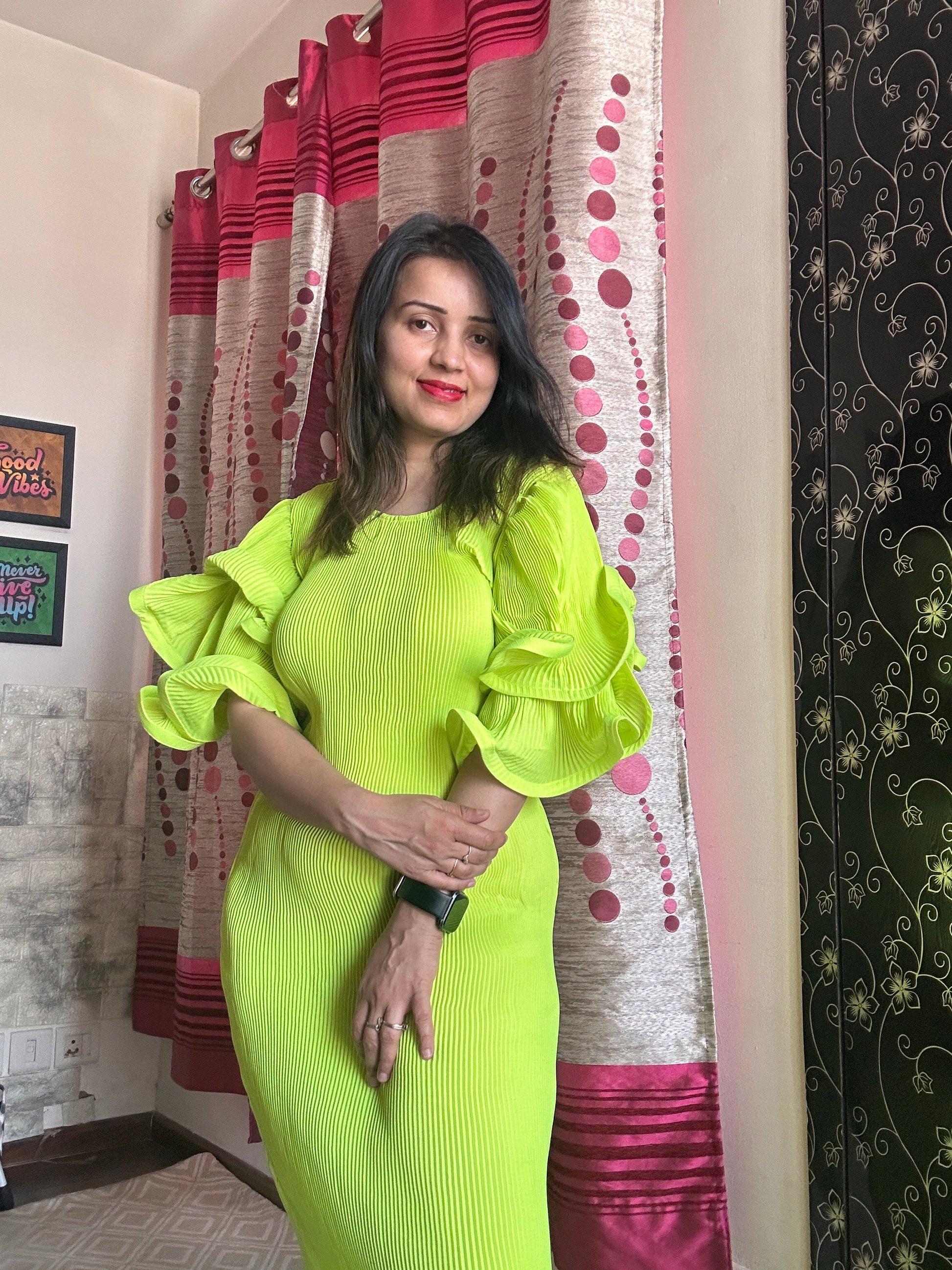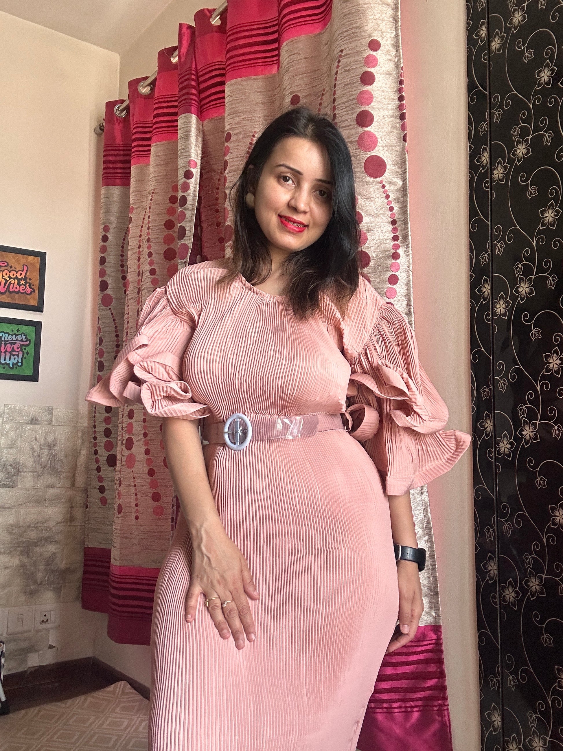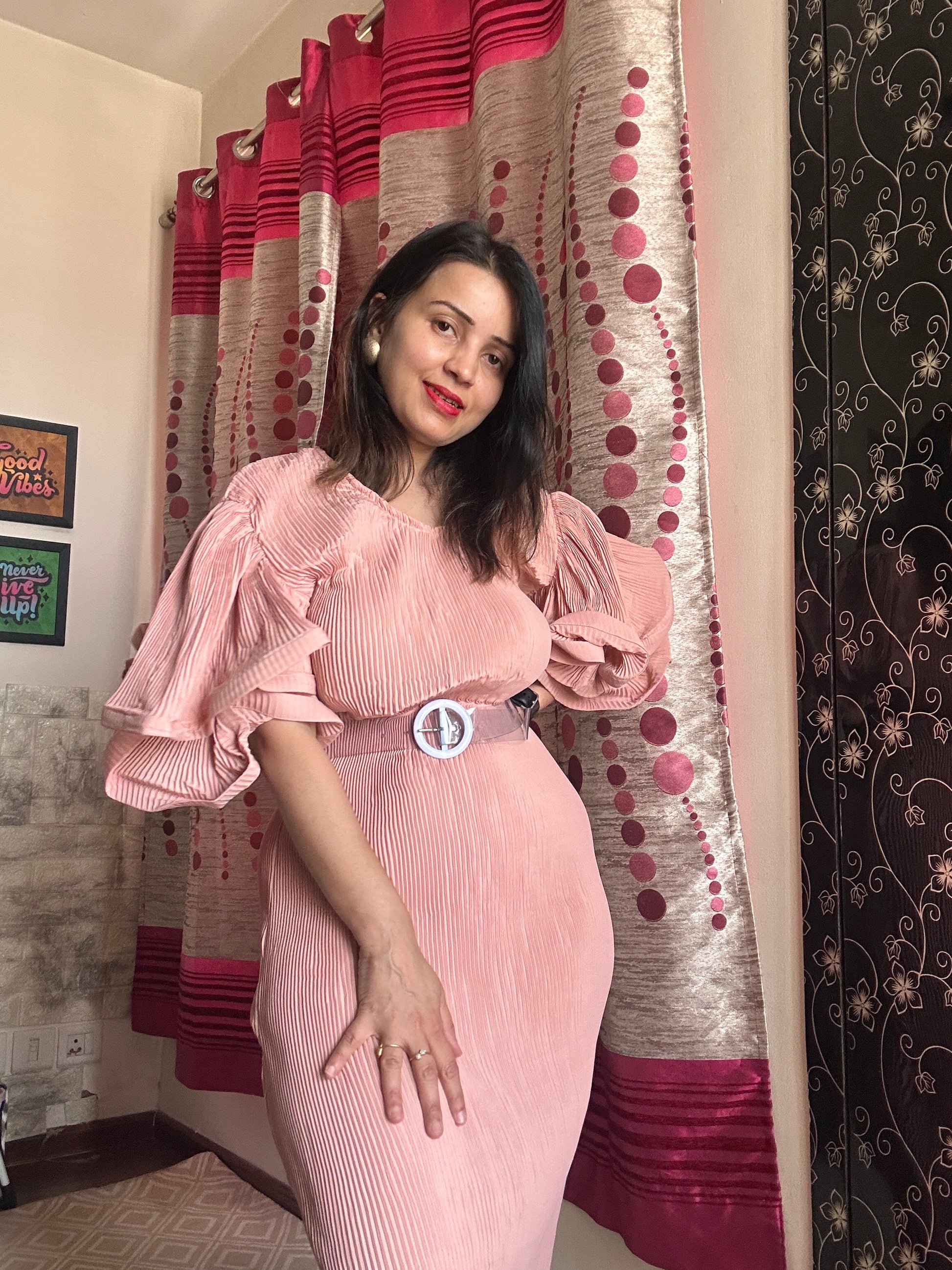 Pleated A-line maxi dress